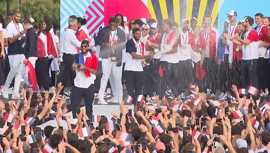 French Olympic medallists celebrate victory in Paris