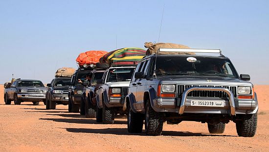 Libyan 4WD enthusiats ride through bumpy Sahara desert to revive tourism