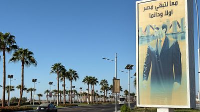 A vehicle passes in front of a billboard showing Egyptian President Abdel Fattah el-Sissi at the Red Sea city of Sharm el-Sheikh, Egypt.
